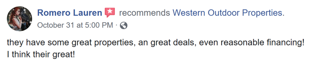 We firmly believe everyone should be able to own the property of their dreams. Thats why we offer owner financing on all properties and land for sale with great terms! You won't find them anywhere else! Whether it's a horse property, ranch, off grid property or a place to call home - we have something for everyone!